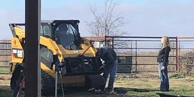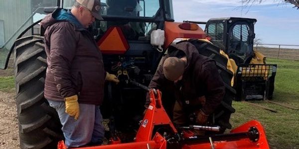 Bradley cleaning the skid steer after Bob fed rolls of hay to the cows in the mud.
