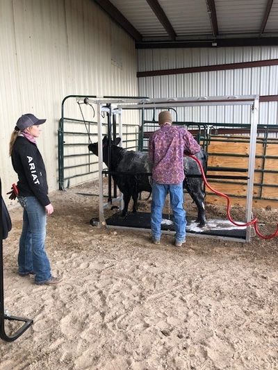 Bradley and Ayla grooming "Rosie". Fort Worth Stock Show is coming up soon. Great job to the both of you!
