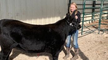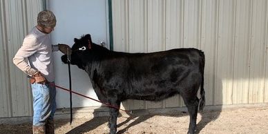 Bradley working with Rosie, getting her ready for the Fort Worth Stock Show.